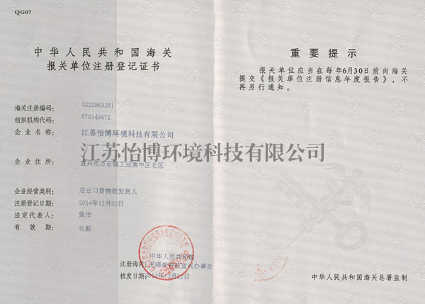 報關單位注冊登記證書